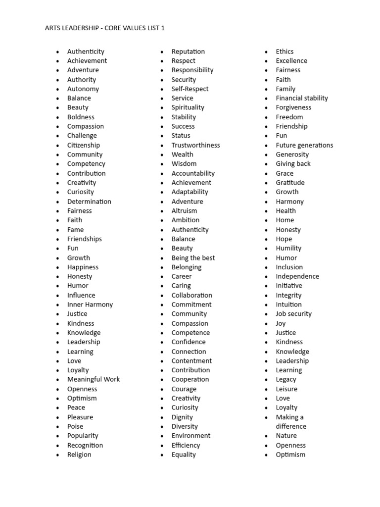ARTS LEADERSHIP CORE VALUES LIST 1 PDF Social Psychology Virtue