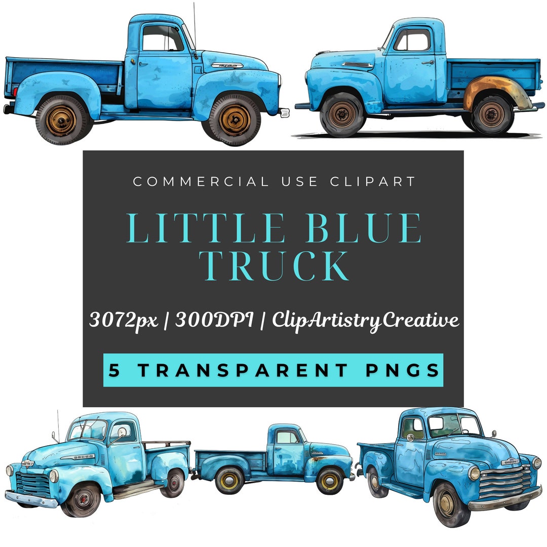 Little Blue Truck Clipart Bundle PNG Transparent Background Digital