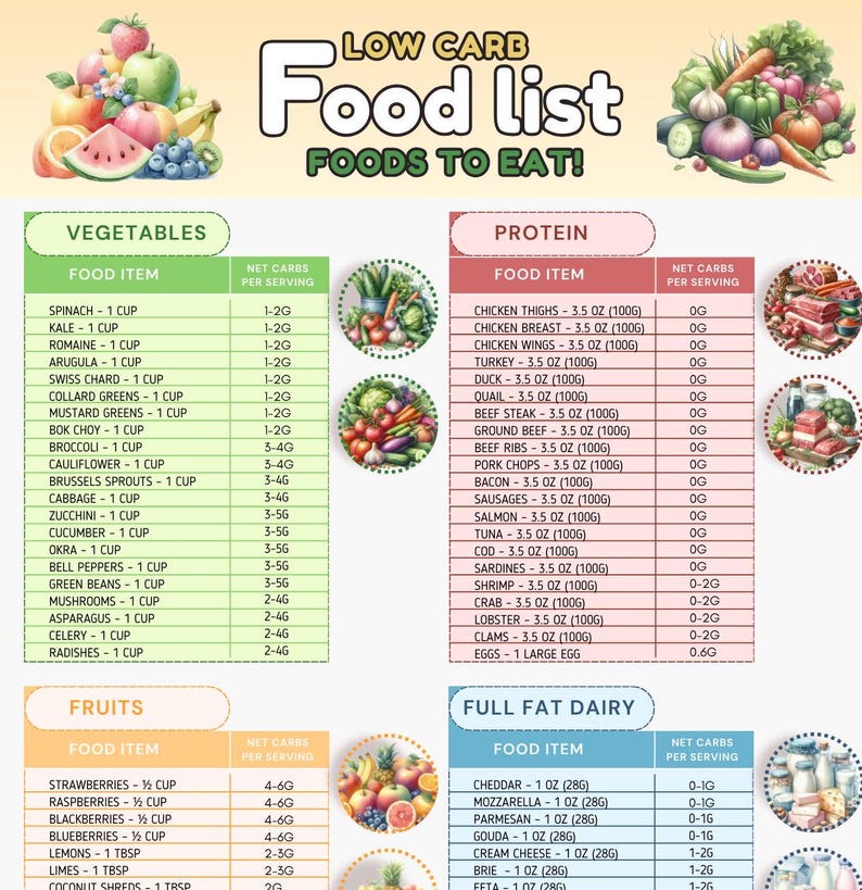 Beginner Chart Low Carb Food List Printable Calendar Productivity Hacks