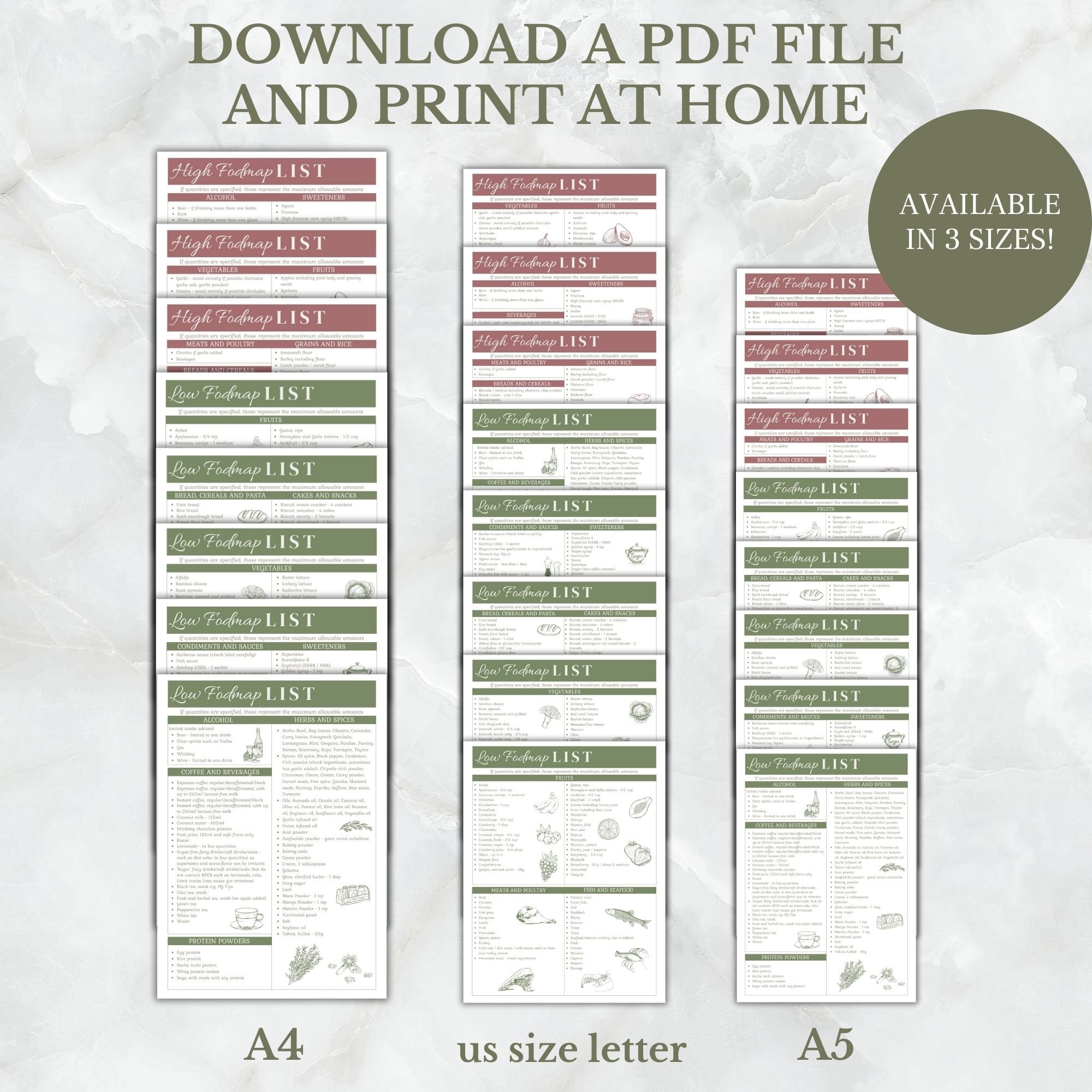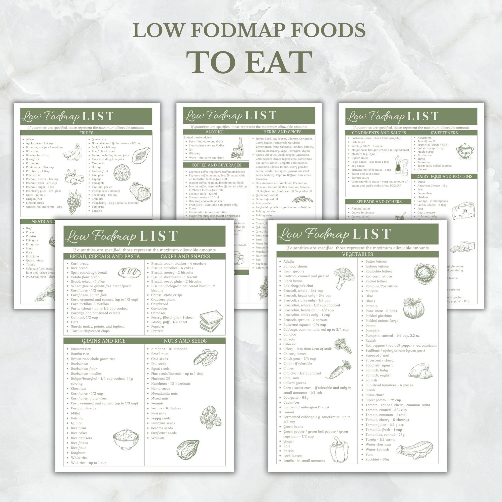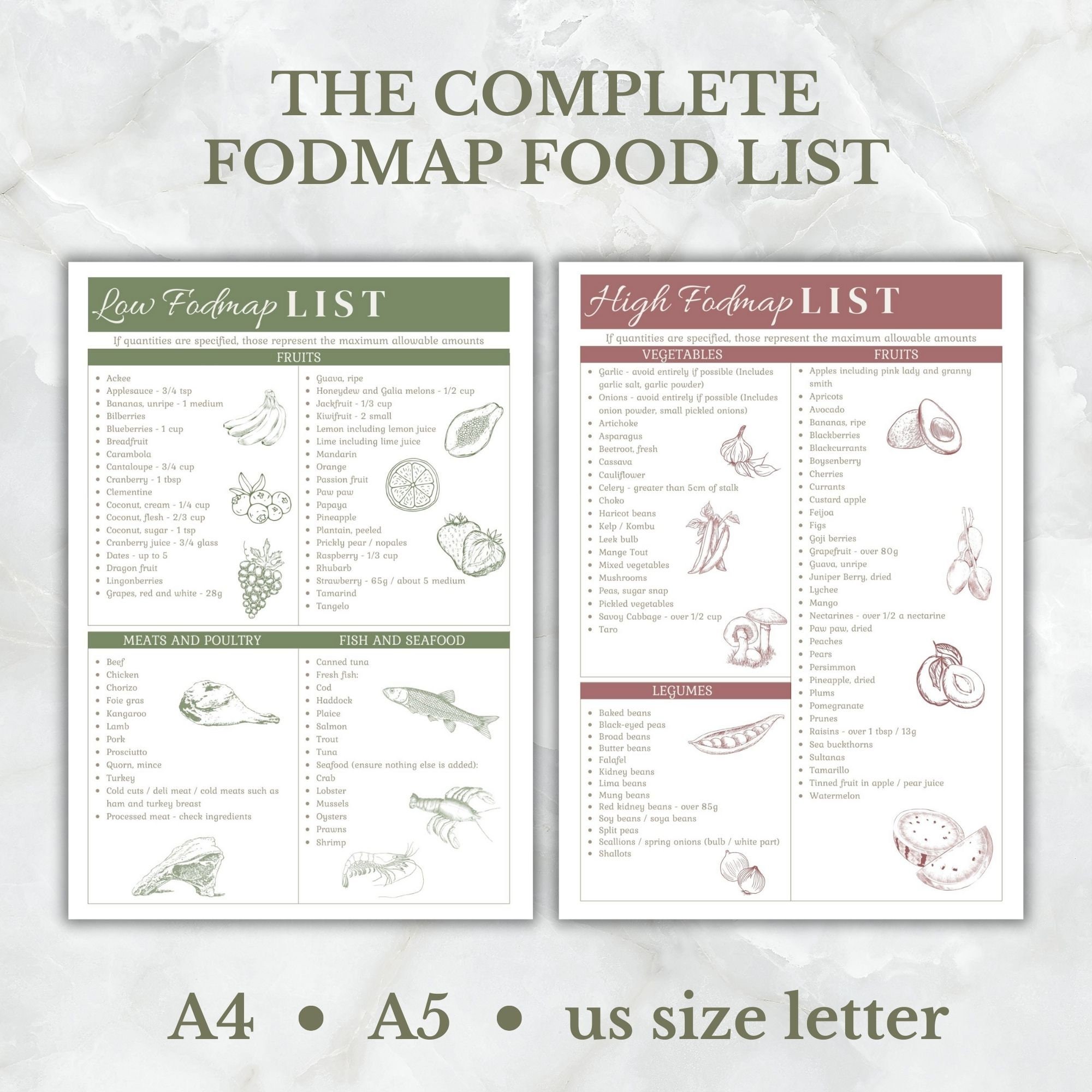 Low FODMAP Printable Grocery List Foods List Instant Download 2 in 1