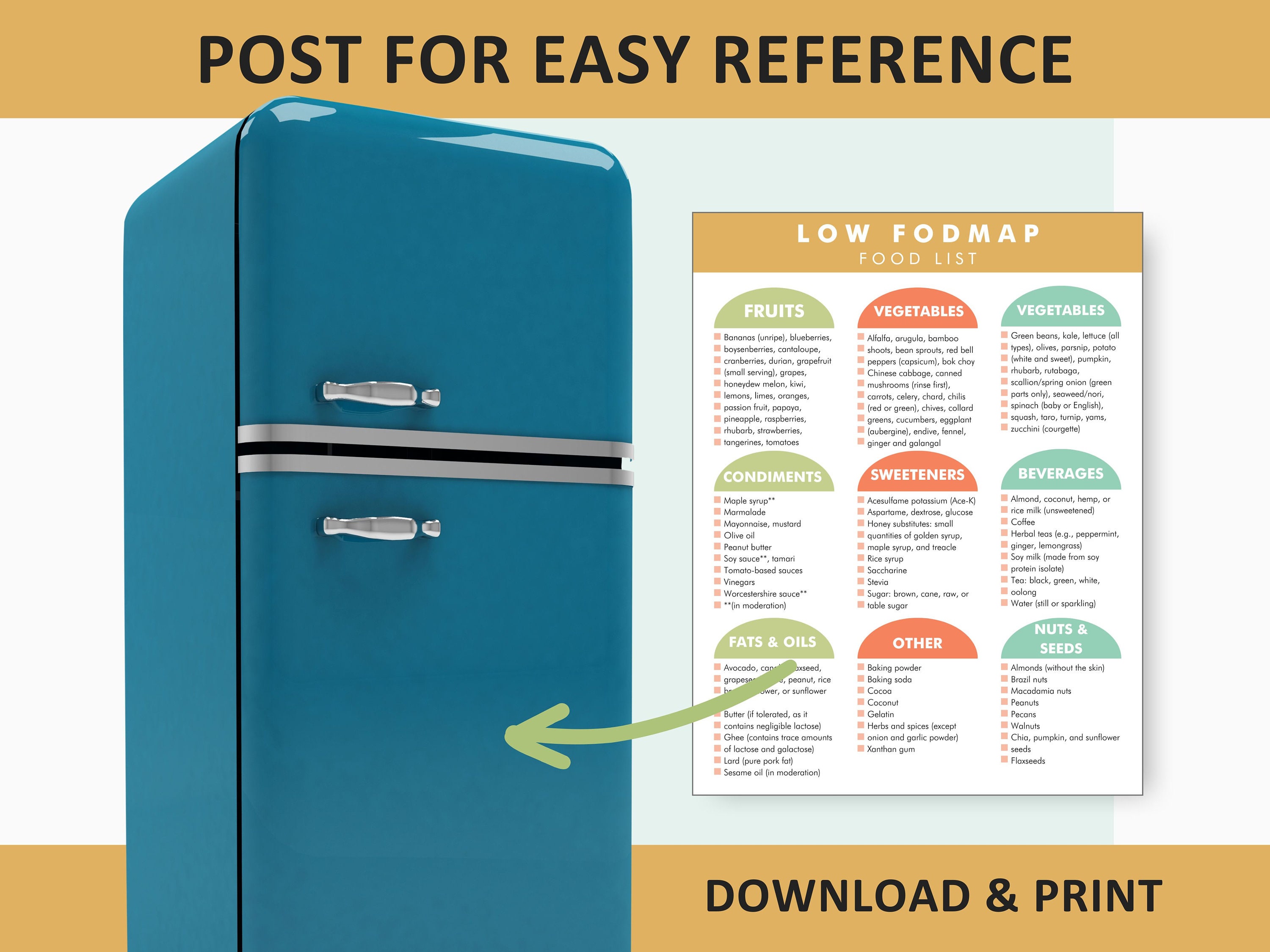 Low FODMAP Simplified Easy to Use Diet Food Elimination Printable List