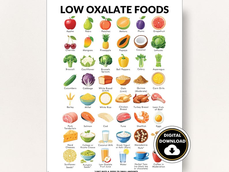Oxalate Food List: Low Oxalate Foods for Kidney Stone Diet Printable