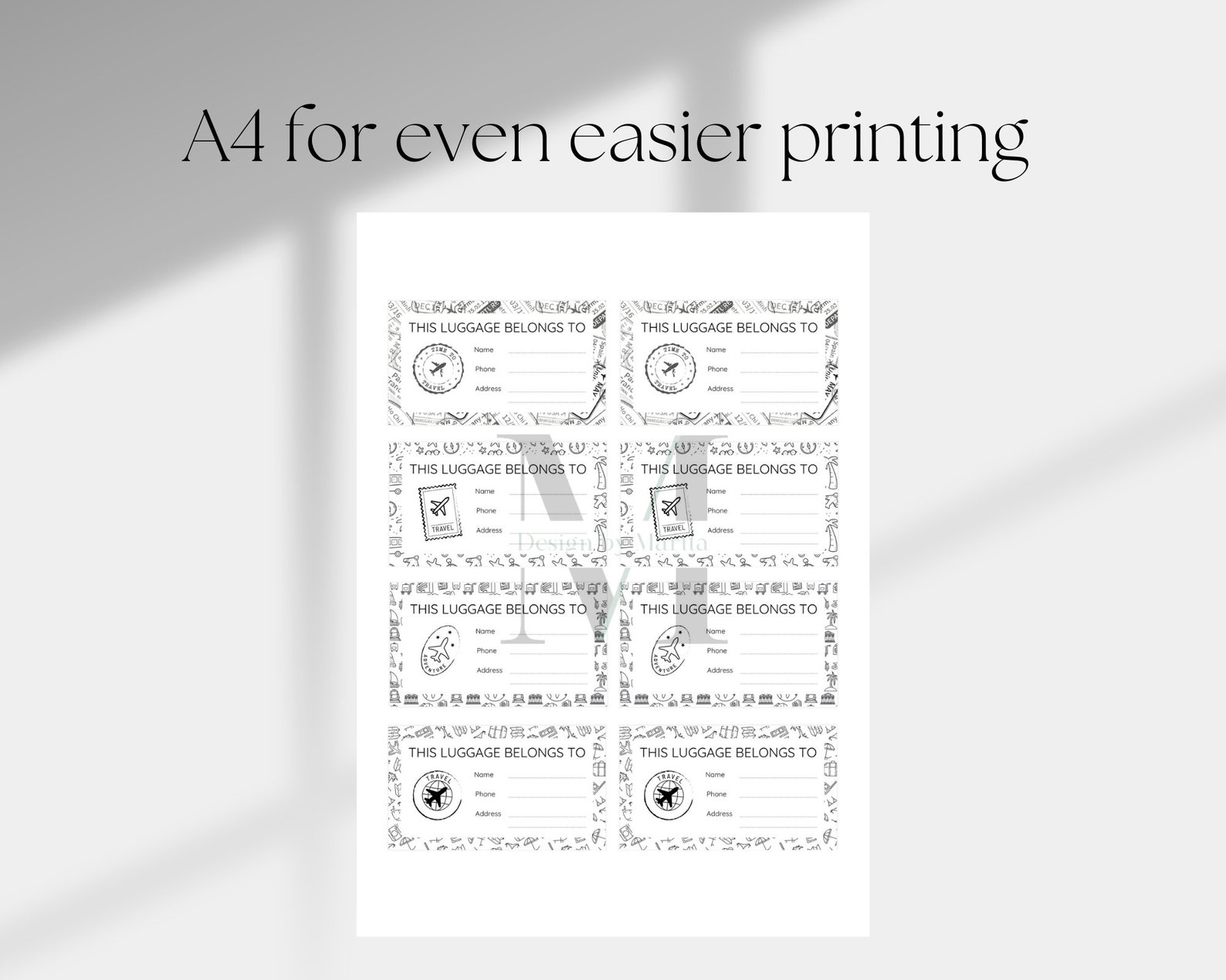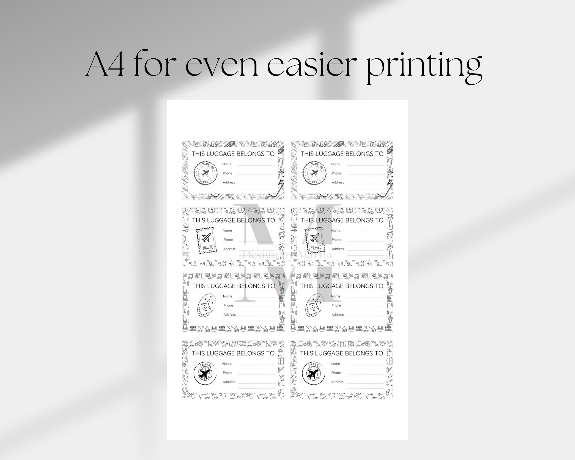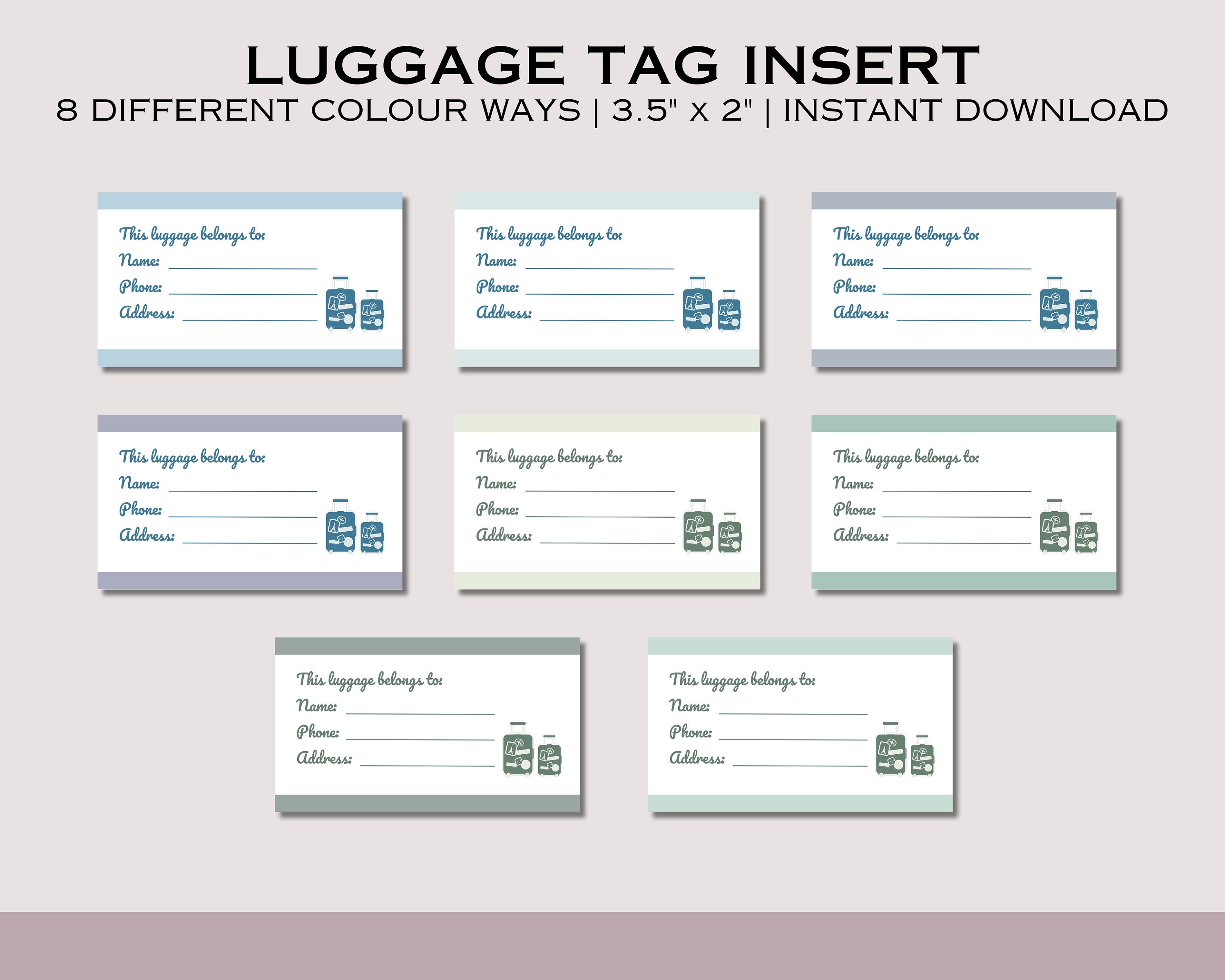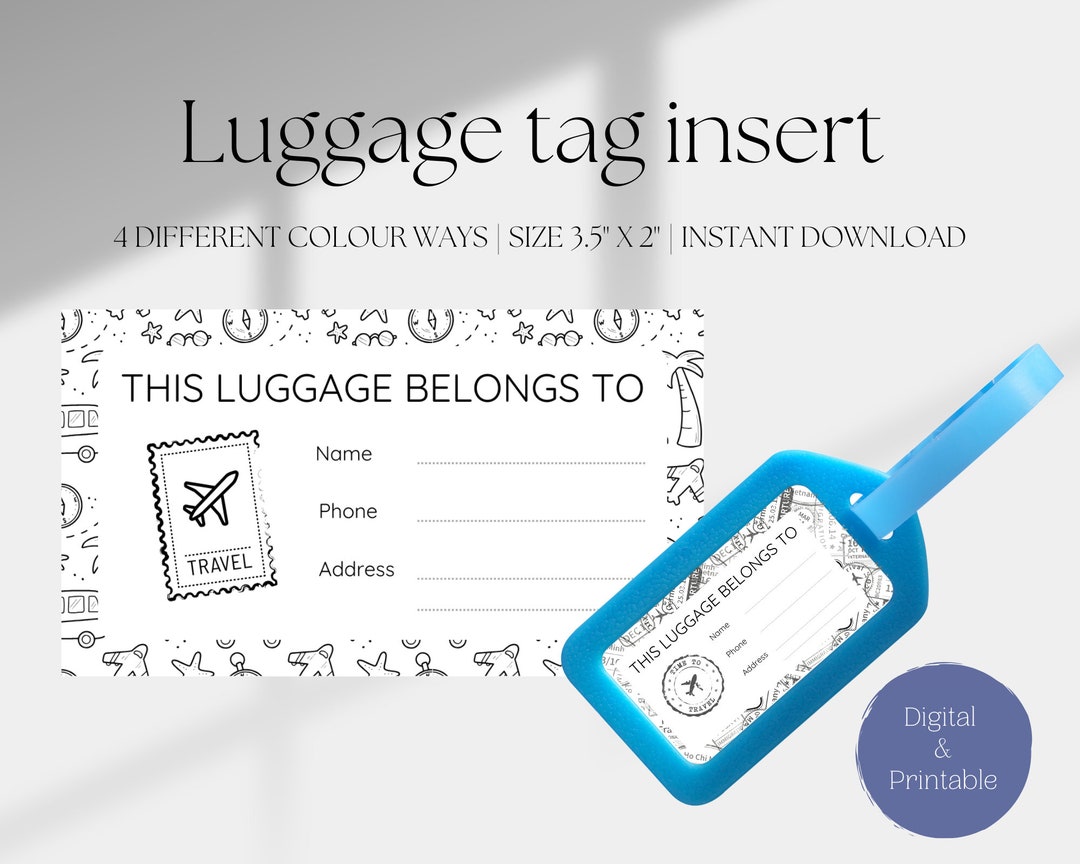 Printable Luggage Tag Insert Suitcase Tag for Traveller Luggage Tag for