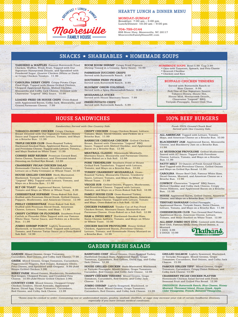 Mooresville Family House Lunch and Dinner Menu PDF Pasta French Fries