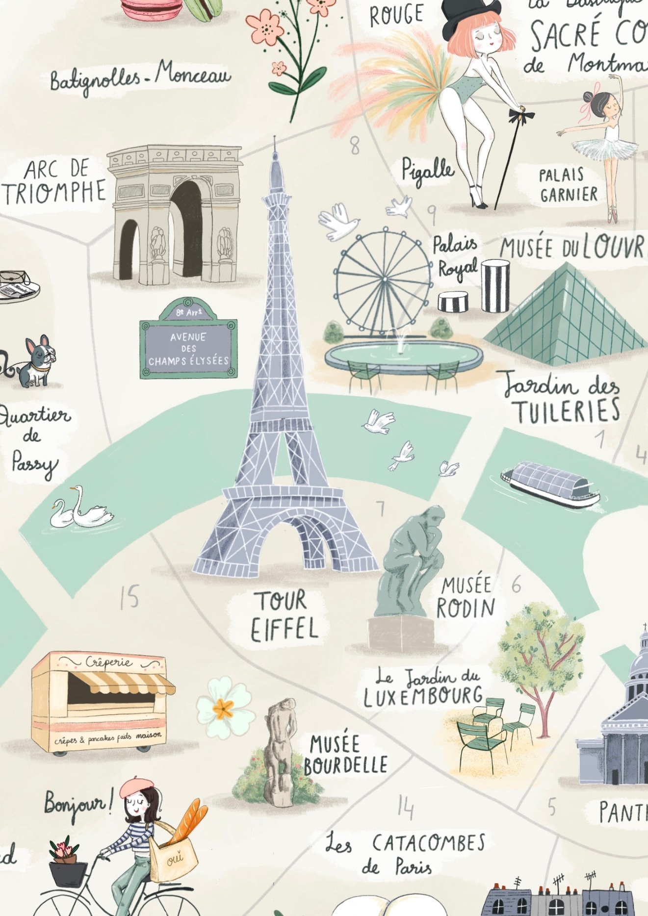 Printable Paris Illustrated Map Art Print Etsy