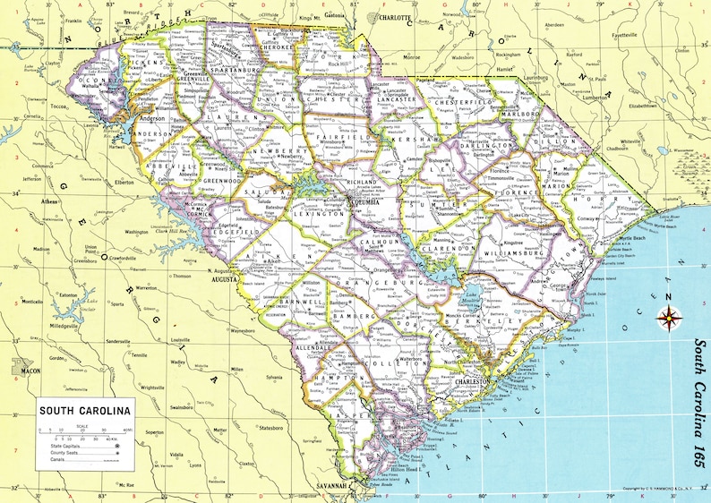 South Carolina Map Art PRINTABLE South Carolina Countries Map SC