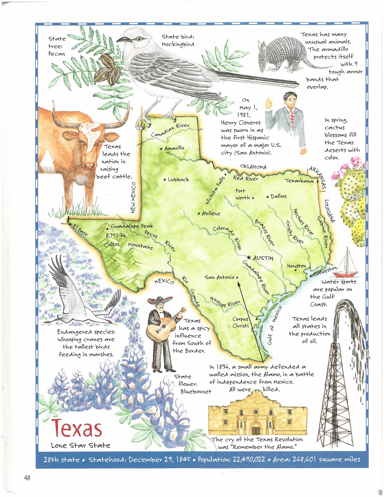 Fun State Map of Texas Vintage Pictorial Whimsical Cartoon Print