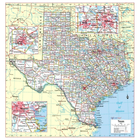 Texas State Wall Map Large Print Poster Laminated 30 quot Wx31 quot H Walmart com