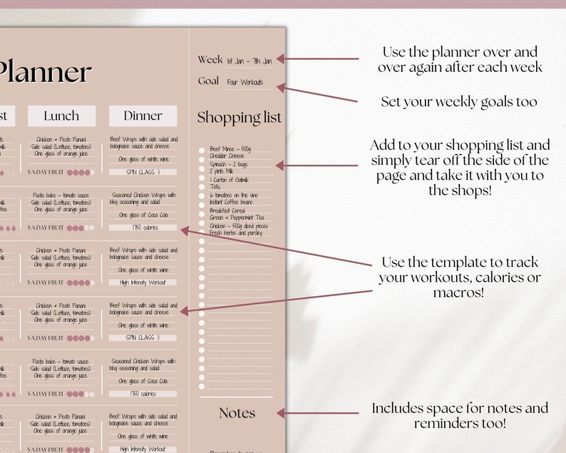 Digital meal Tracker Template Printable Etsy Food tracker Meal