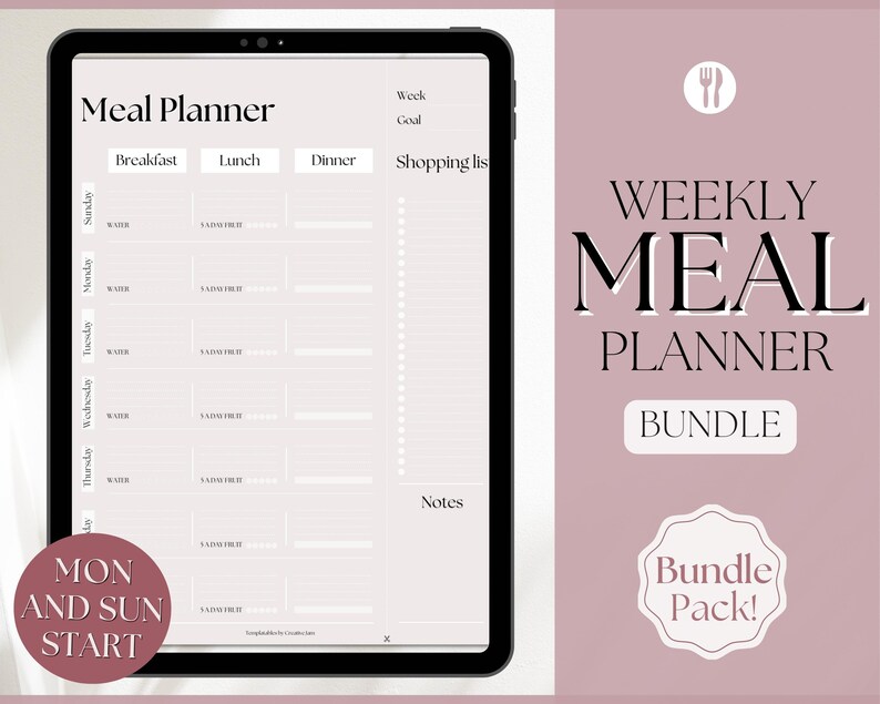 FOOD DIARY Weekly Meal Planner Printable Meal Tracker Food Etsy