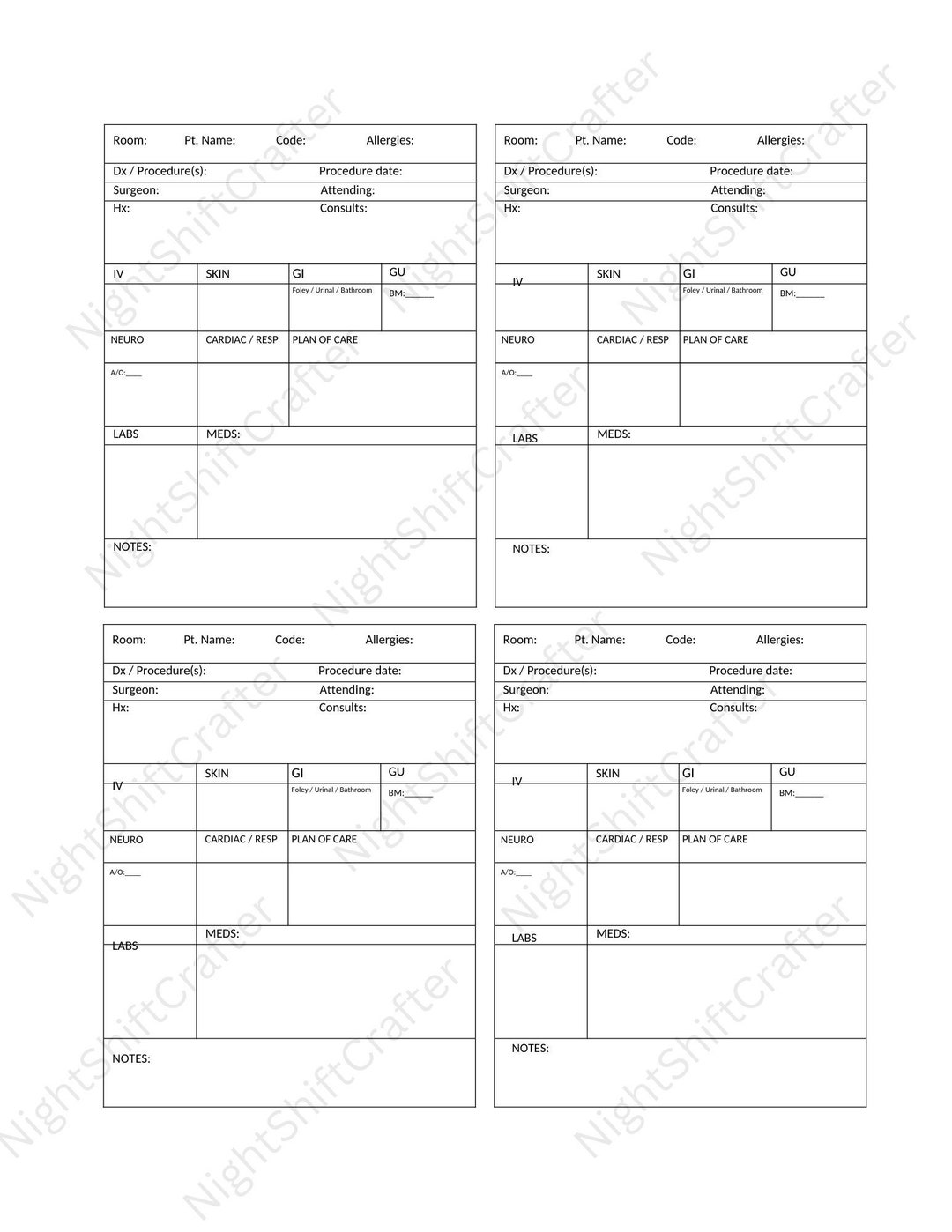 Nurse Report Sheet 3 Patients per Side Med Surg Report Sheet
