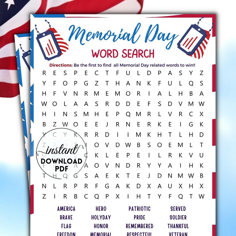 Memorial Day Word Search Printable Family Game Word Search Memorial