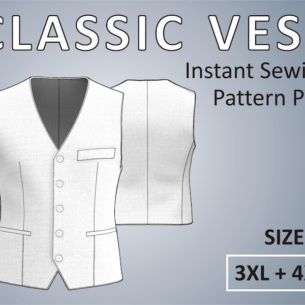 Vest PDF sewing pattern and Video Tutorial men #39 s sizes 2xs Inspire