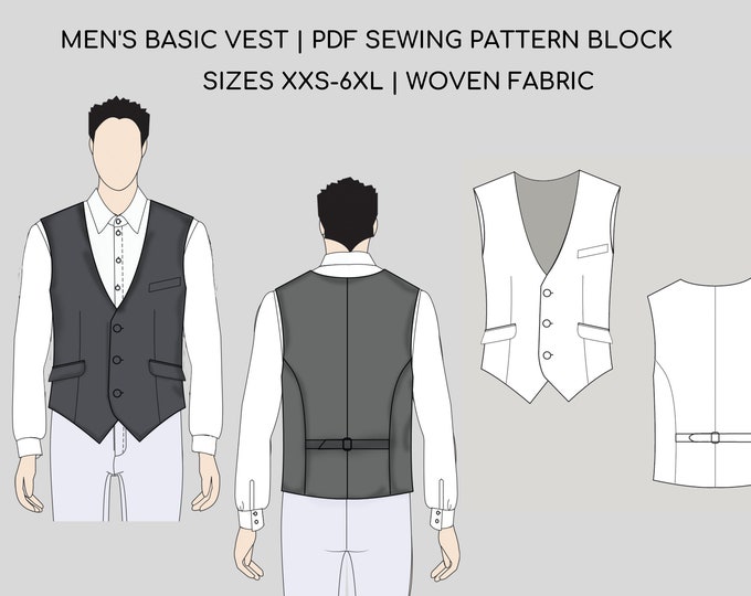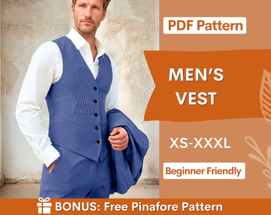 Vest Pattern for Men Men Sewing Pattern Waistcoat for Men Sewing