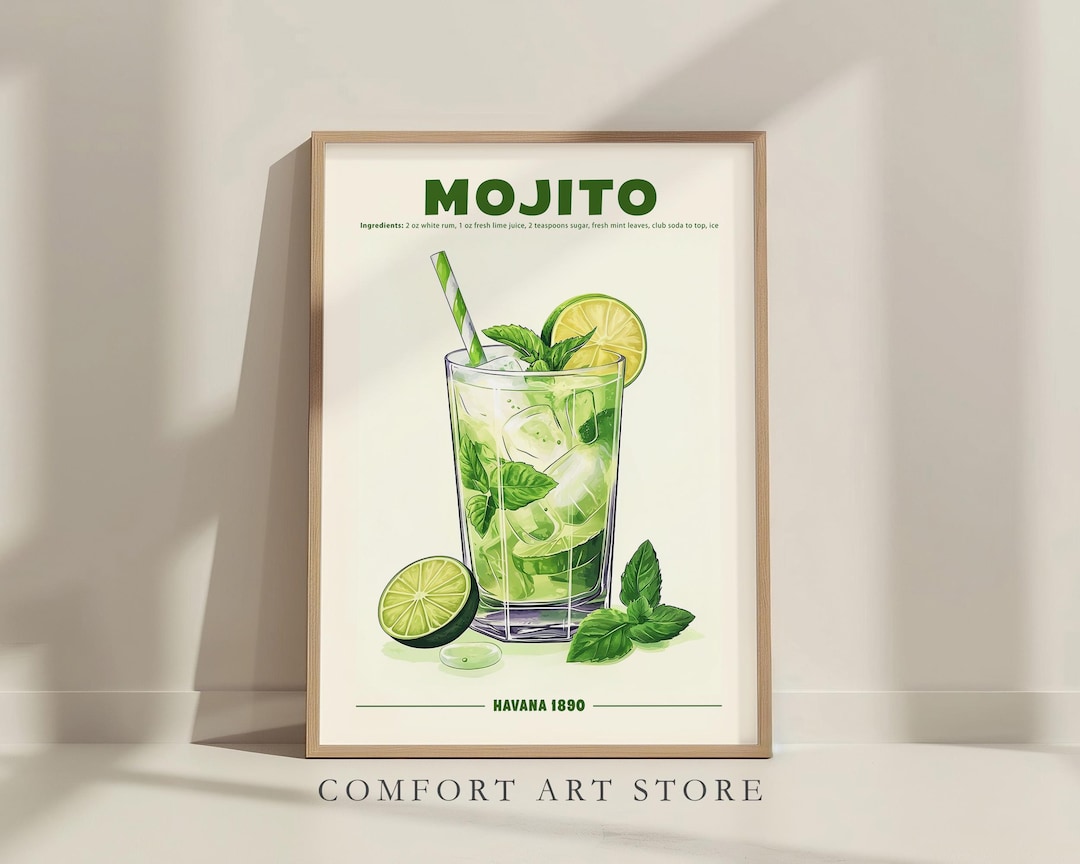 Mojito Cocktail Print Cocktail Poster Alcohol Cocktail Mojito Wall Art