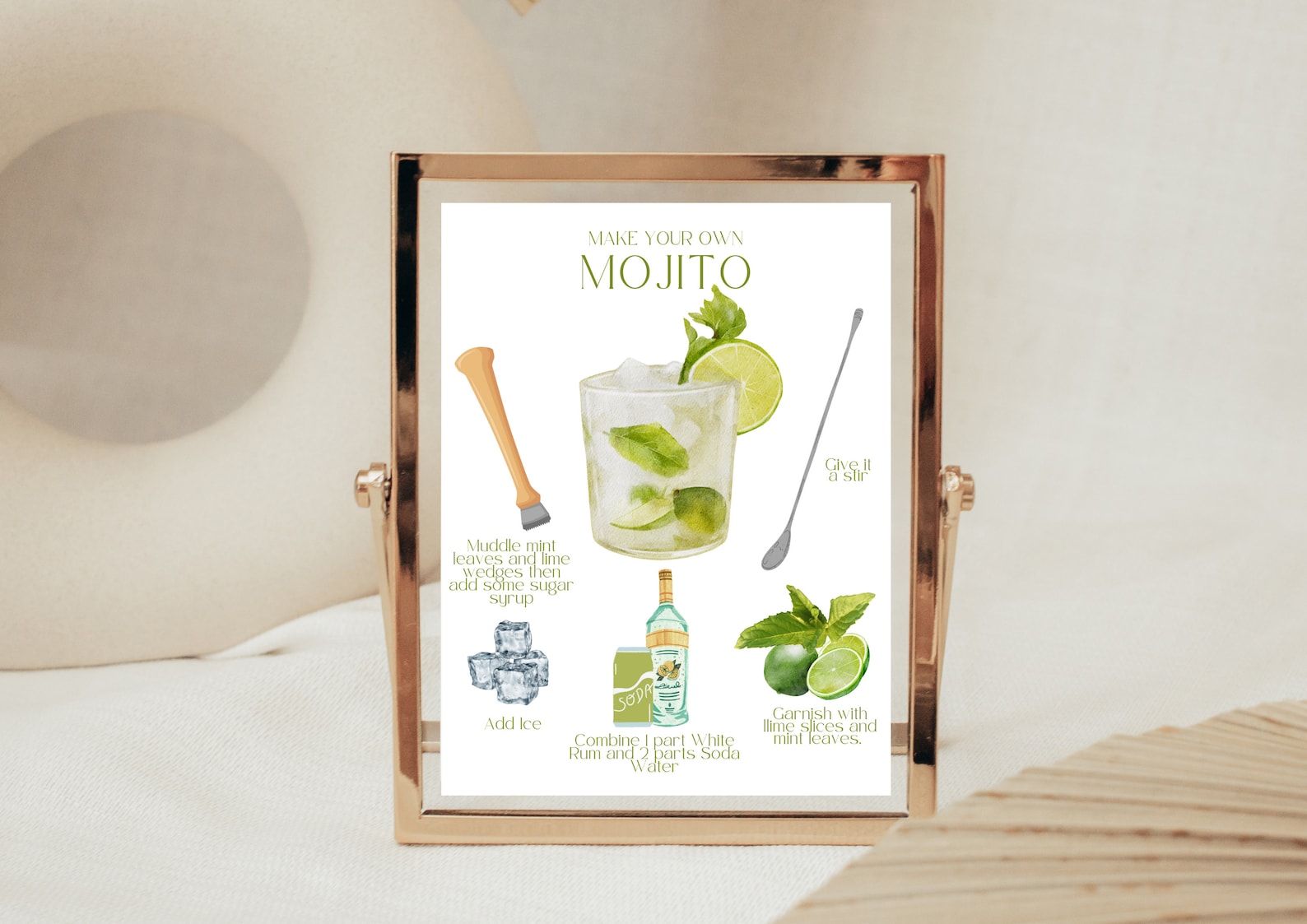 Mojito Bar Sign Make Your Own Cocktail Mojito Recipe Sign Cocktail Bar