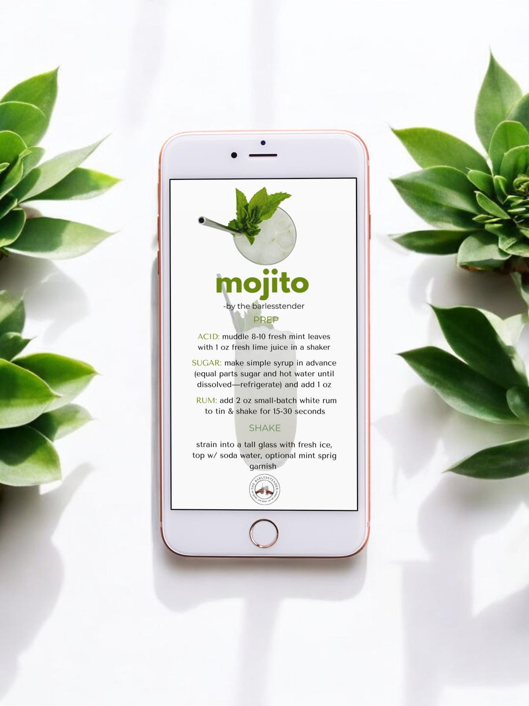 Mojito Recipe Digital Download Phone sized Recipe Card Printable Mojito