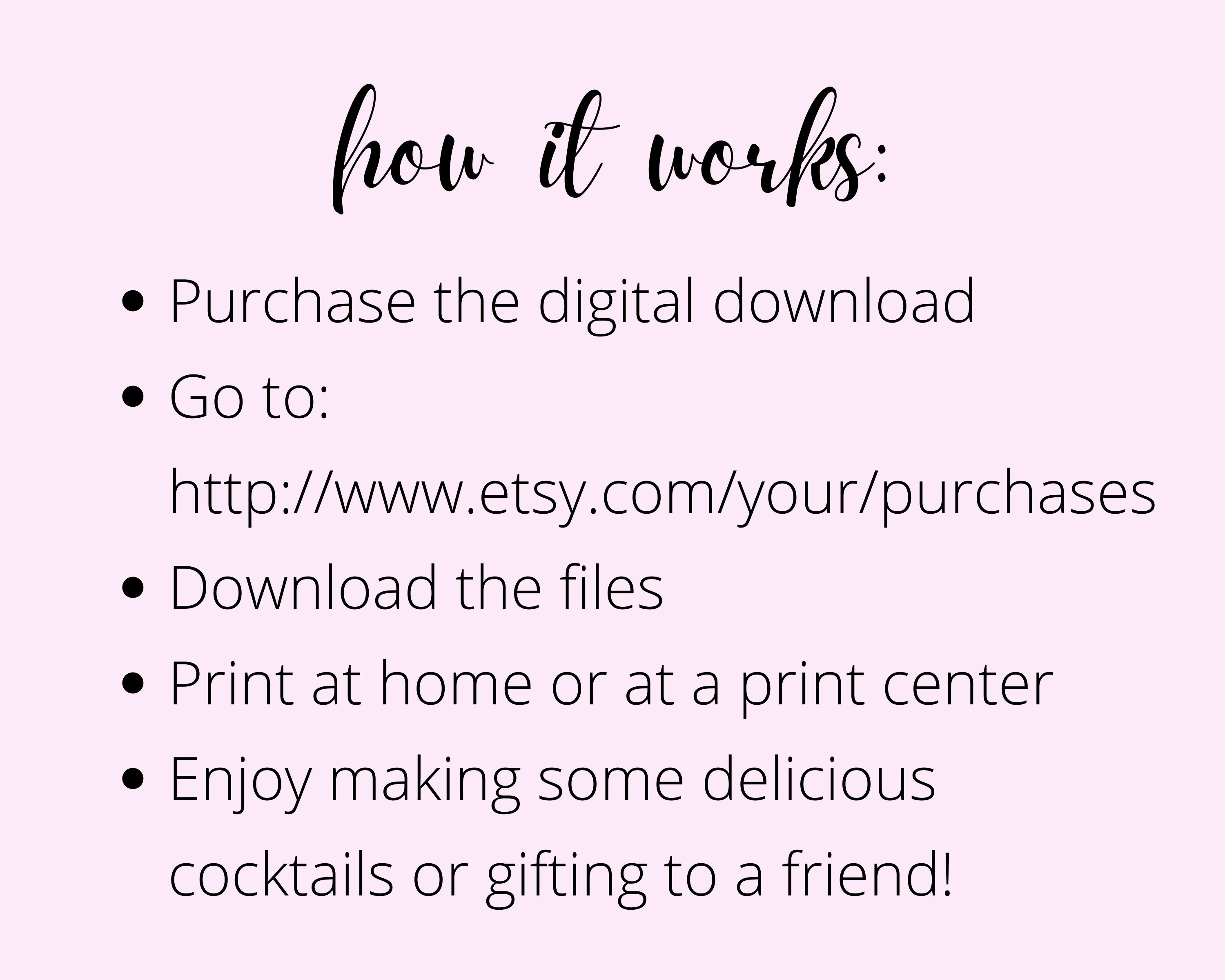 Mojito DIGITAL DOWNLOAD Cocktail Recipe Card Cocktail Recipe Cocktail