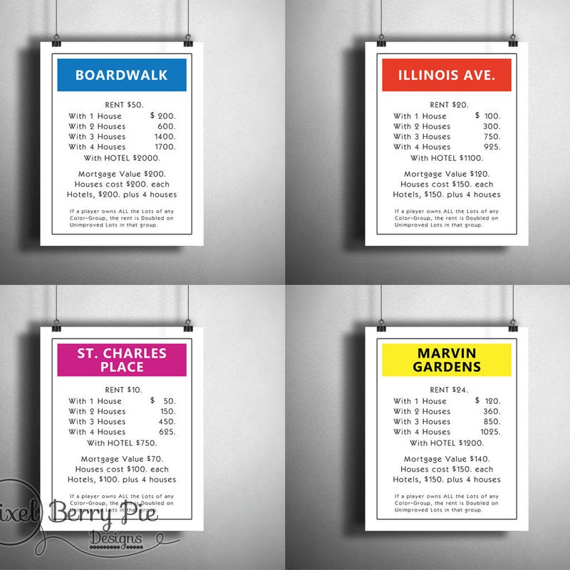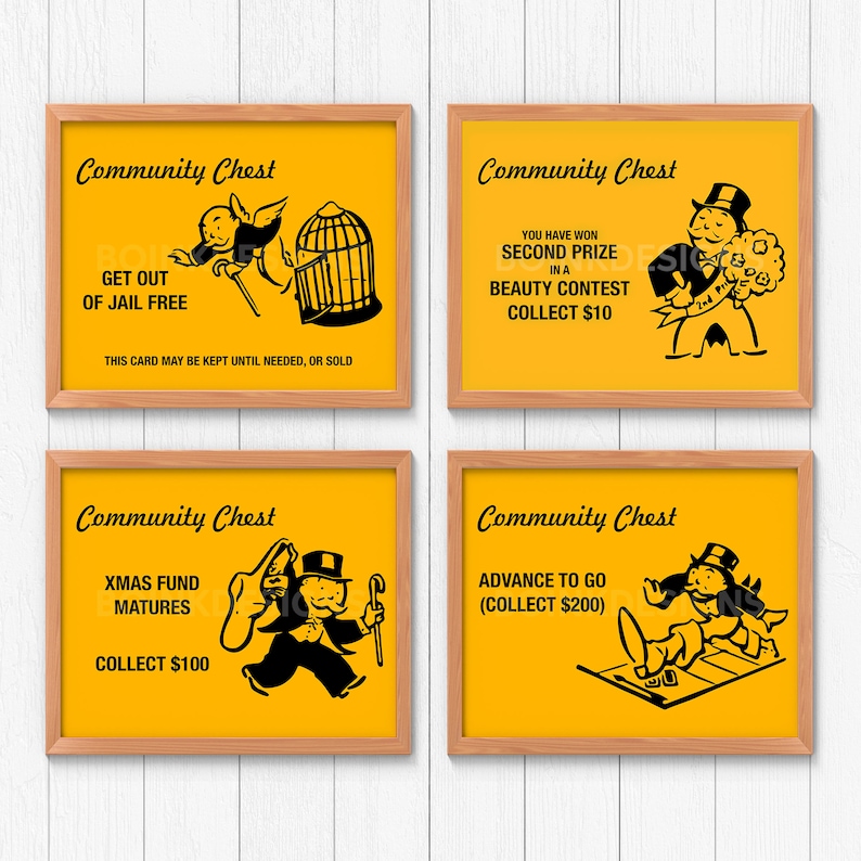 Monopoly Chance Community Chest Card Prints: Game Room Wall Art