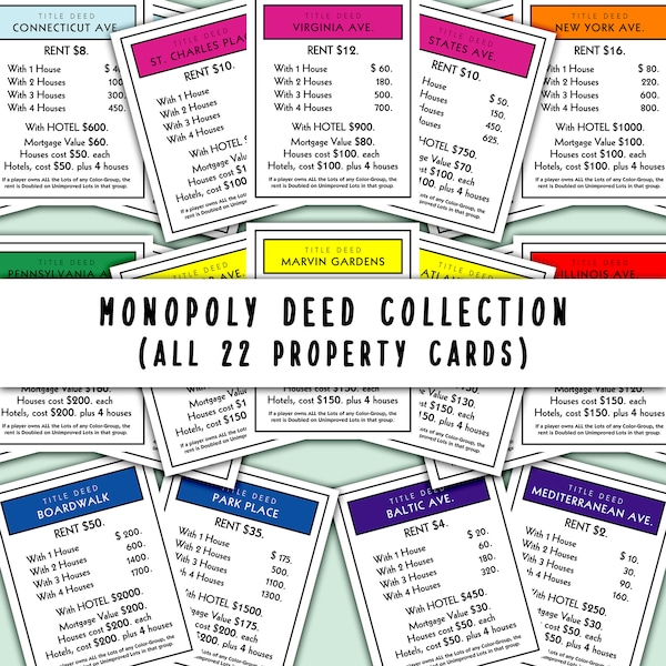 Monopoly Cards All Monopoly Cards Property Utility Chance and