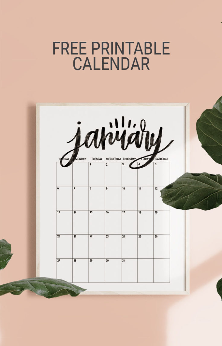 Hand Lettered Free Printable 2019 Monthly Calendar in Two Sizes
