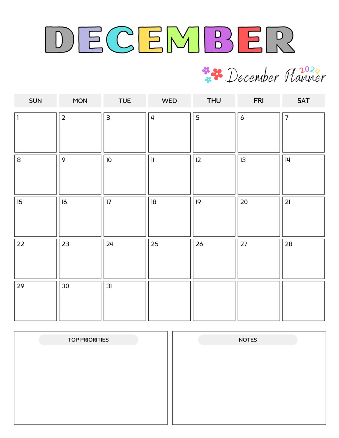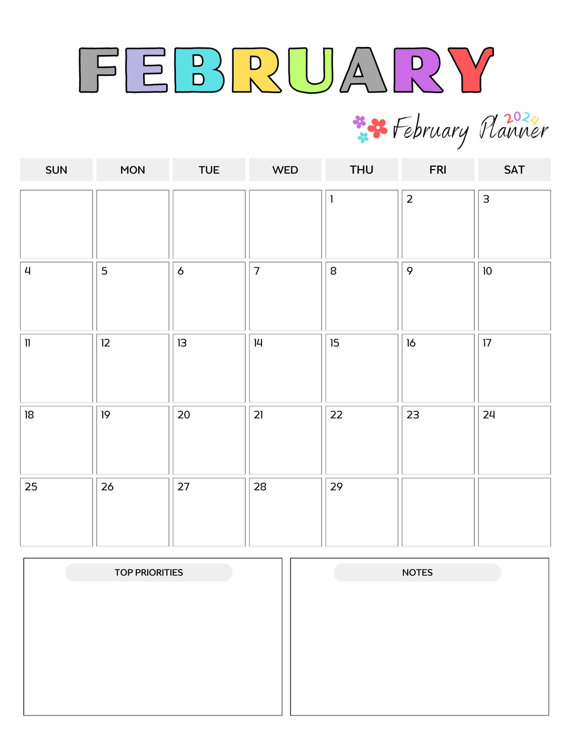 2024 Printable Monthly Calendar PDF Etsy