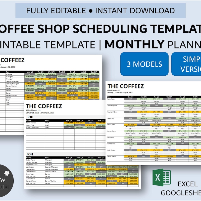 Weekly Employee Work Schedule Staff Shift Hours Scheduling Planner