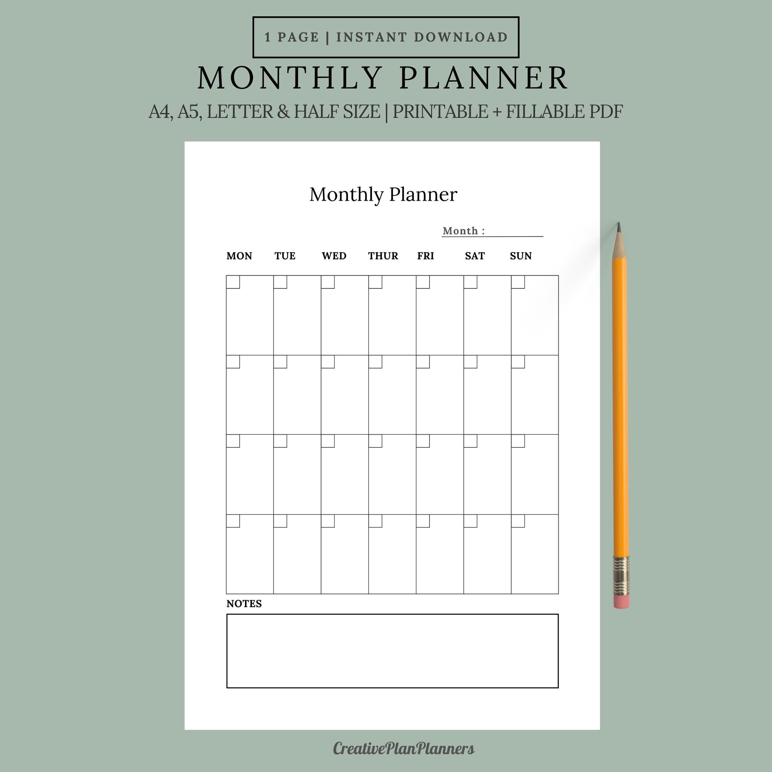 Monthly Planner With Blank Pages at Jerry Grantham blog