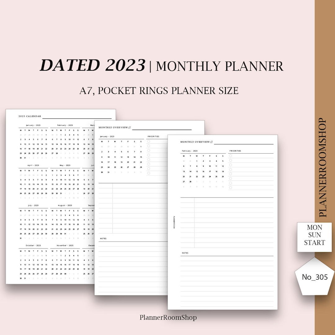 DATED 2023 Printable Monthly Planner Inserts for Pocket Planner Monthy