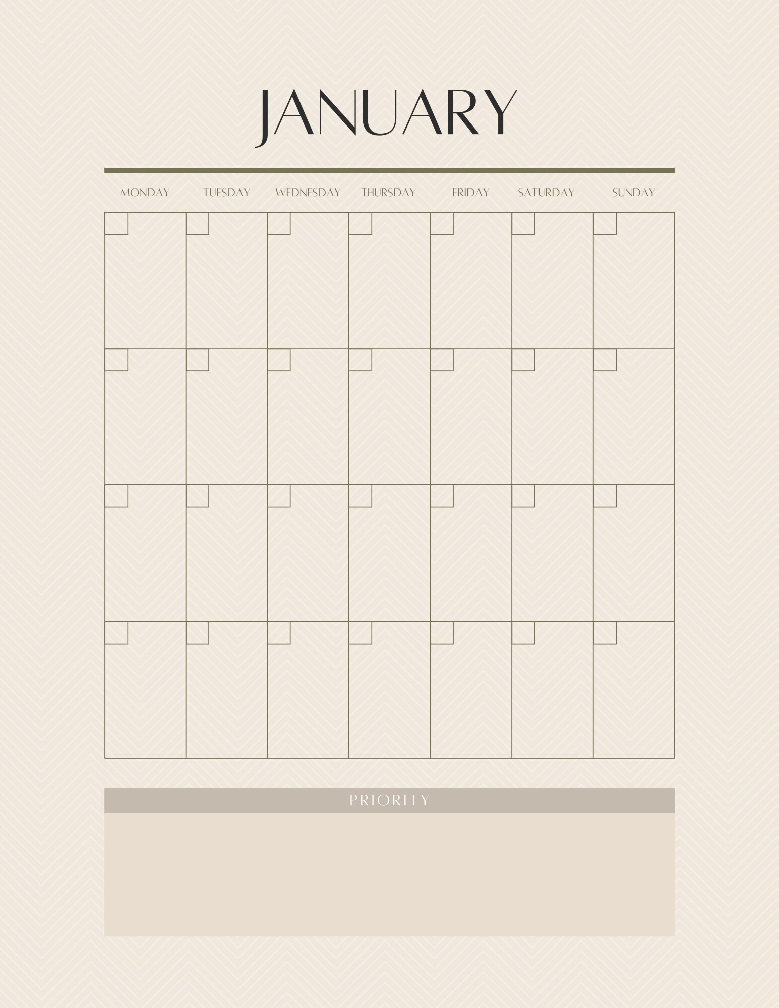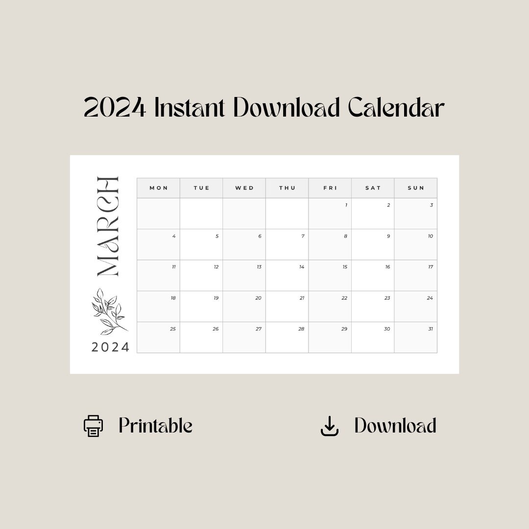 Printable Monthy Calendar Etsy