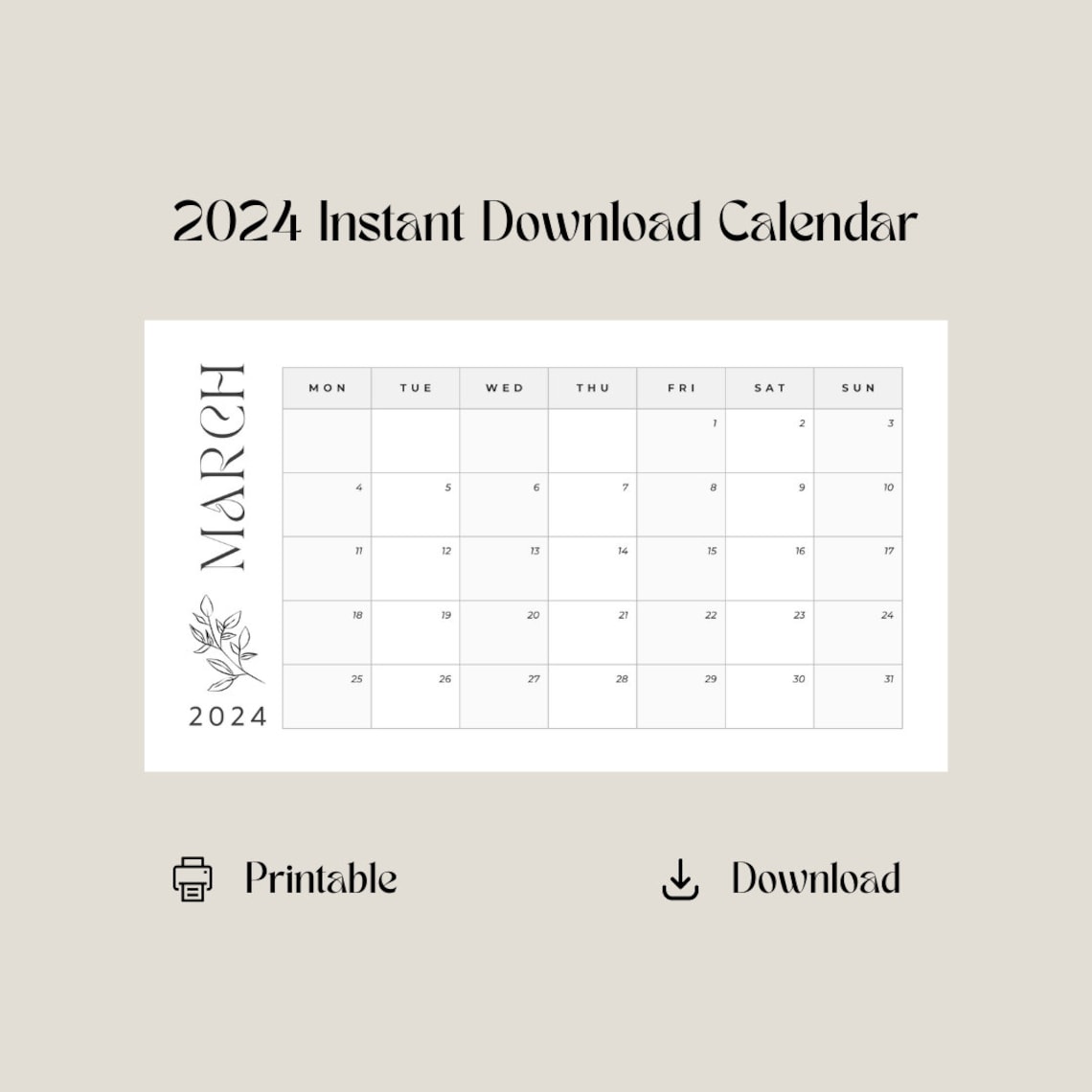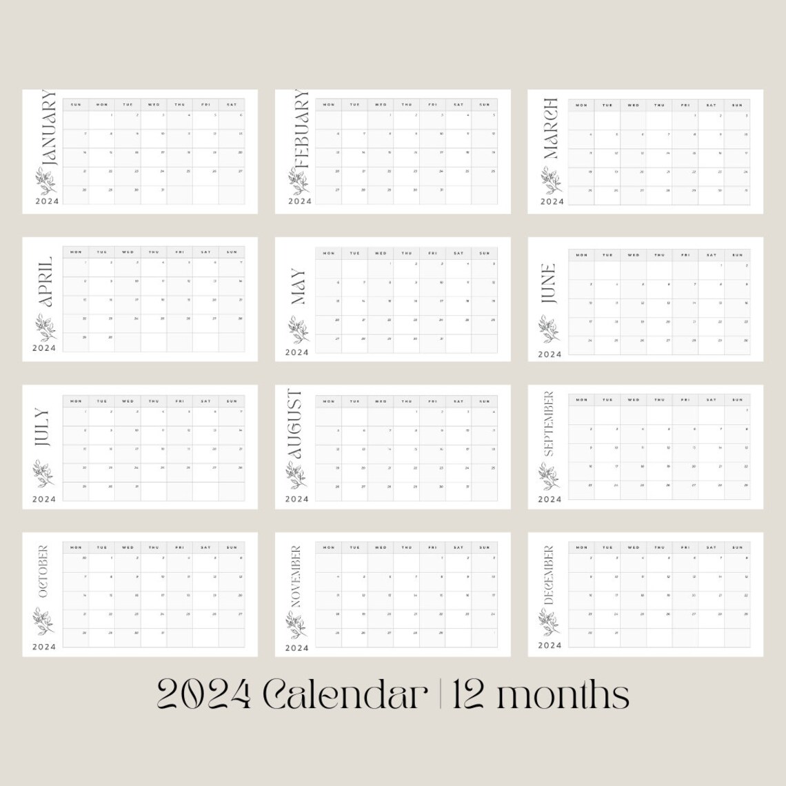 Monthy Calendar 2024 Lined Digital PDF Printable A3 A4 Unlined Download