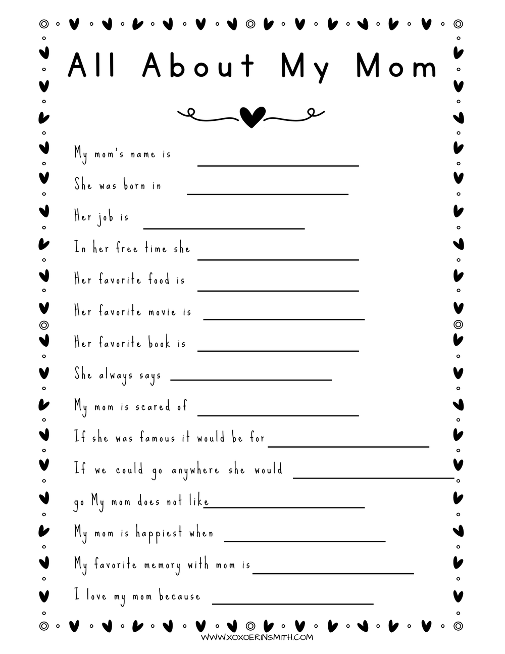 Mother s Day Questionnaire: All About My Mom Printable Mom printable