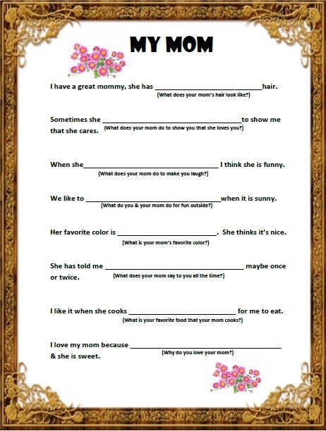 Mothers Day Fill In The Blank Printables Free Educational Printable