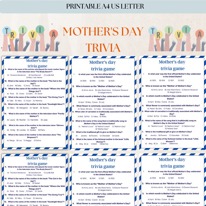 Mother #39 s Day Trivia Printable Mothers Day Games for Kids and Adults