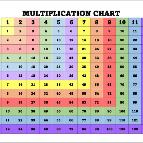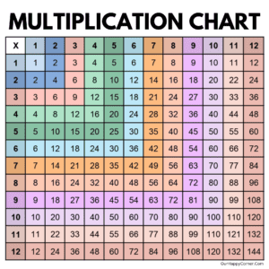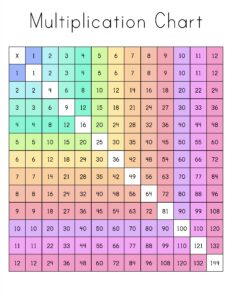 Free Printable Simple Colorful Multiplication Chart 1 12