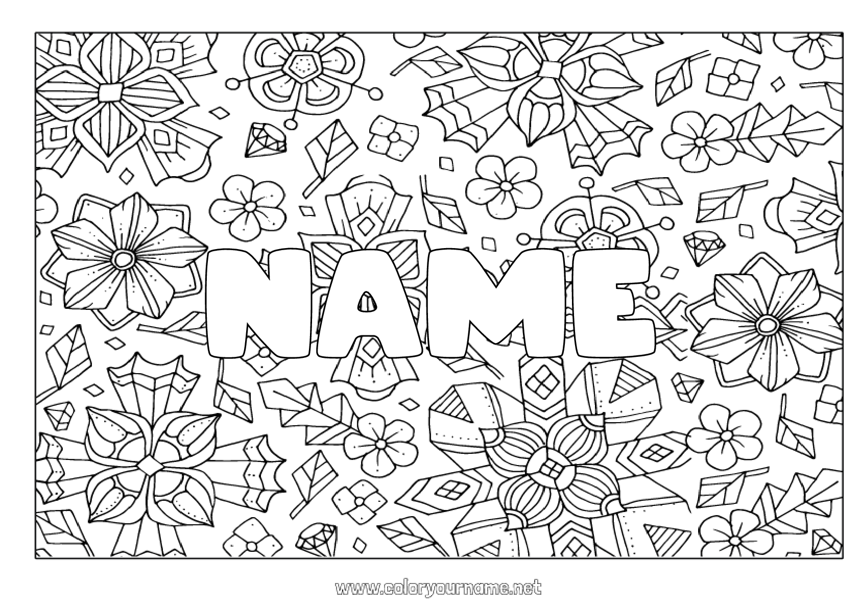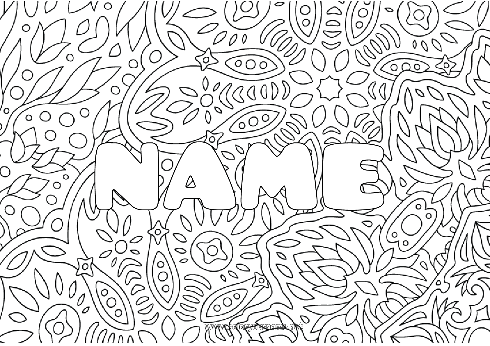 Coloring page No 1405 Flowers Decorated name Complex coloring pages