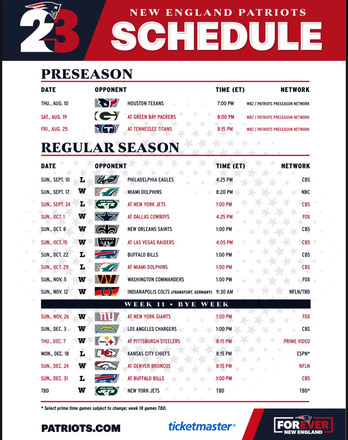 New England Patriots Schedule 2023: Dates Times TV Schedule and More