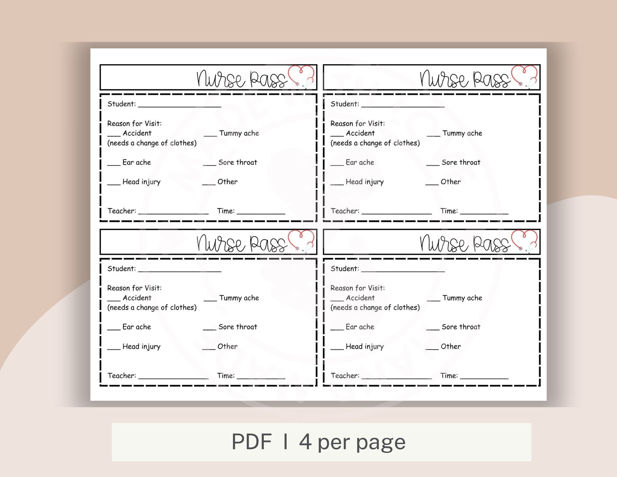 Printable School Nurse Pass PDF Etsy