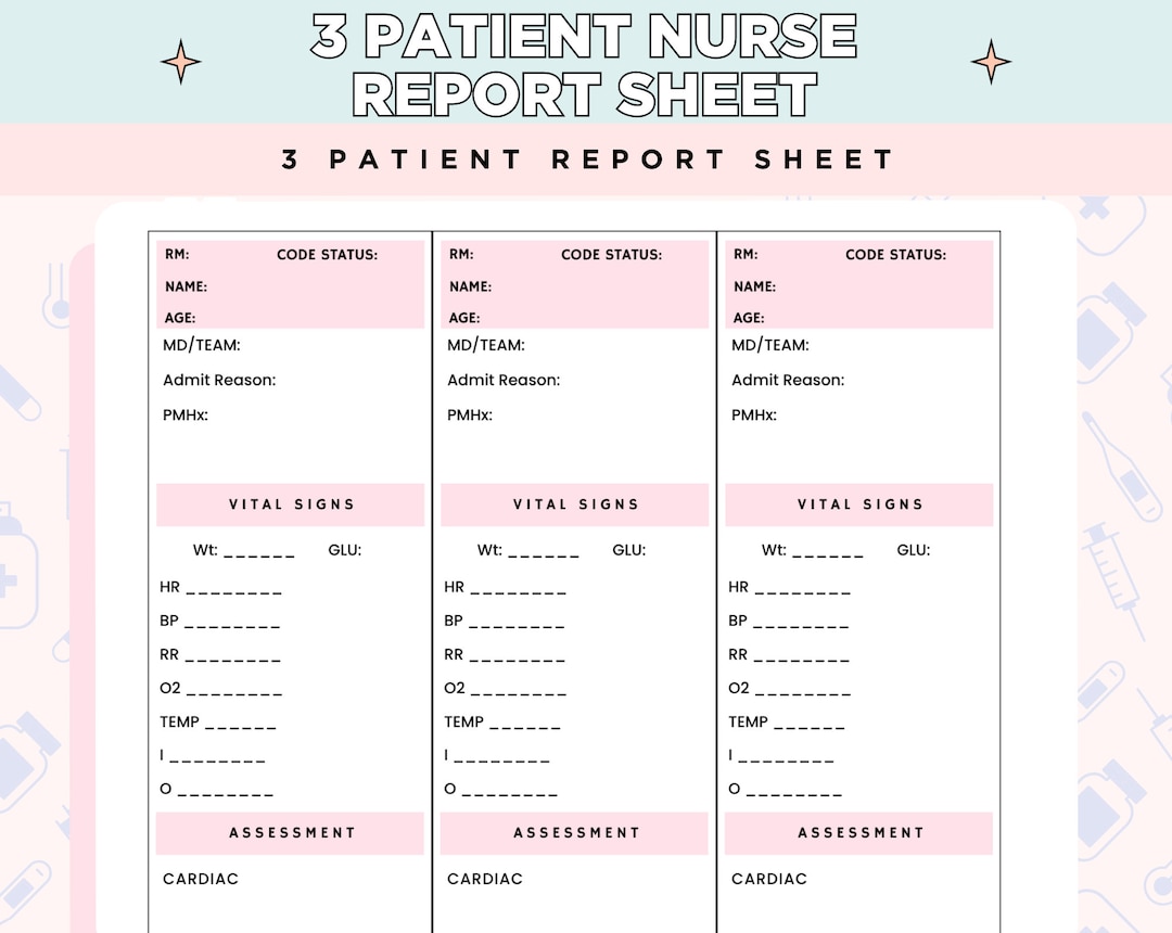 3 Patient Printable Nurse Report Sheet Brain Sheet Med Surg PCU