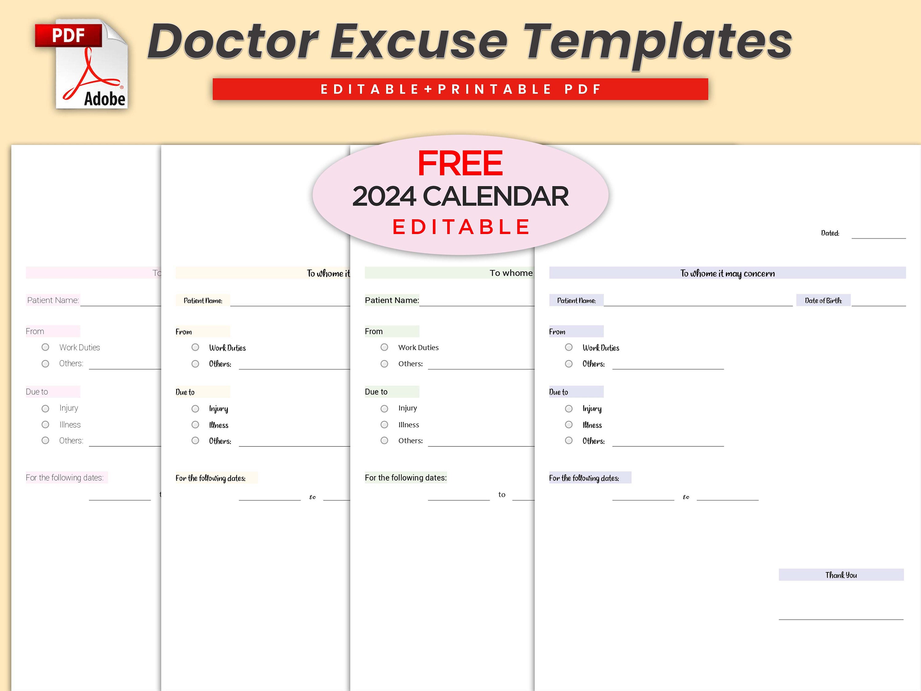Printable Doctors Excuse Template EDITABLE Medical Office Forms Work