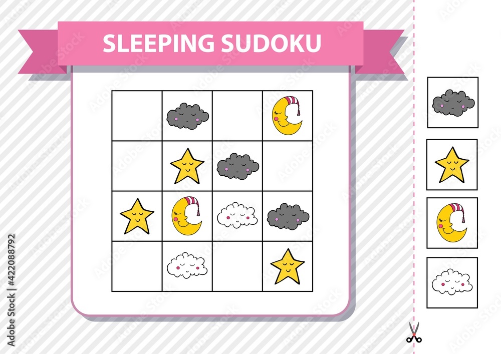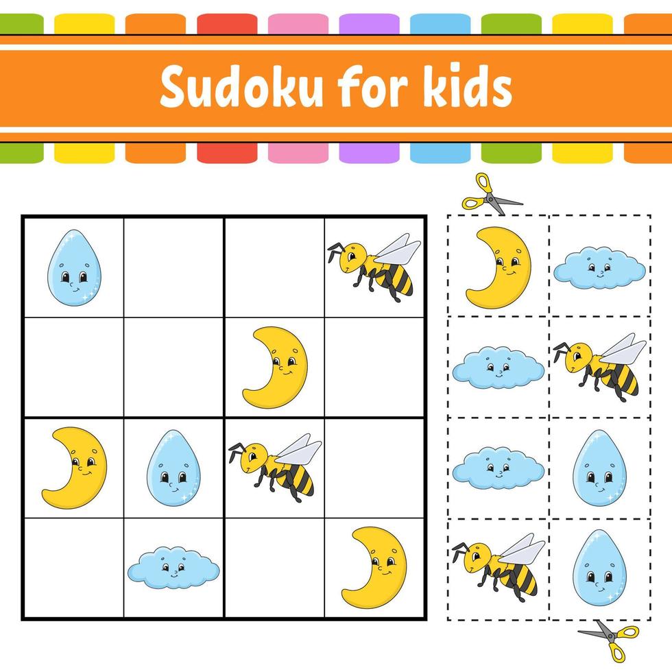 Sudoku game for children with pictures Kids activity sheet Cartoon
