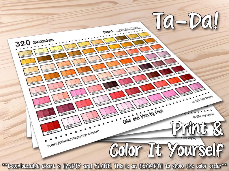 Ohuhu Oahu 320 Marker Swatch Blank Chart Printable DIY Color Chart