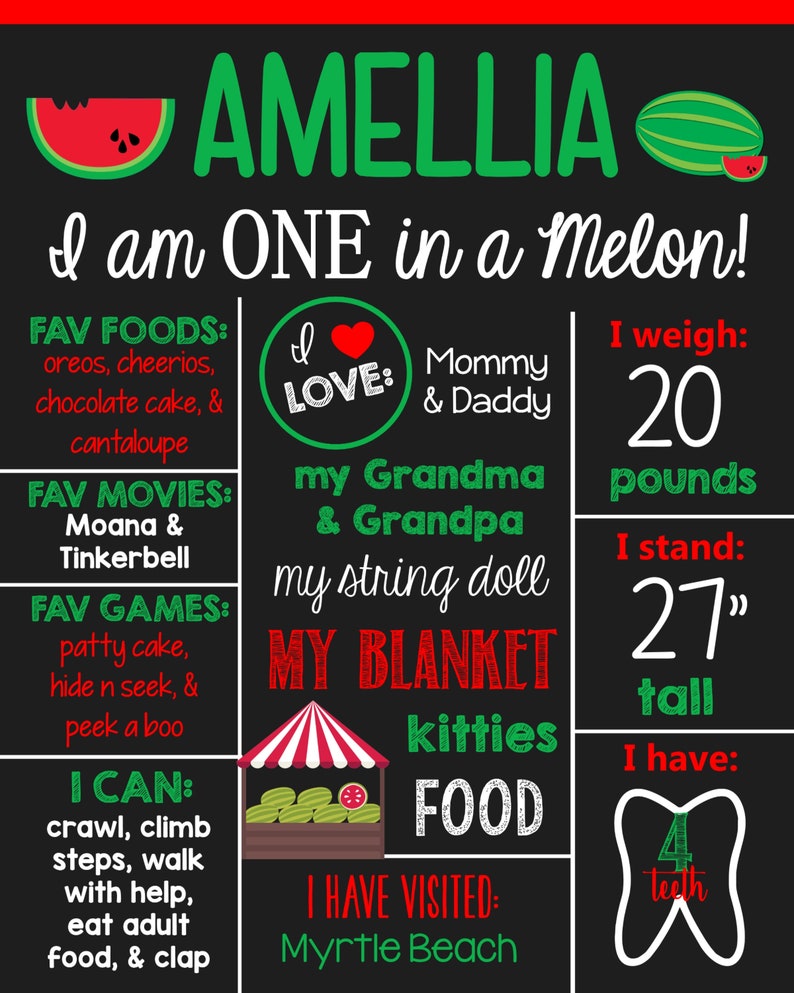 One in A Melon Watermelon Birthday Chalkboard Sign Printable Etsy