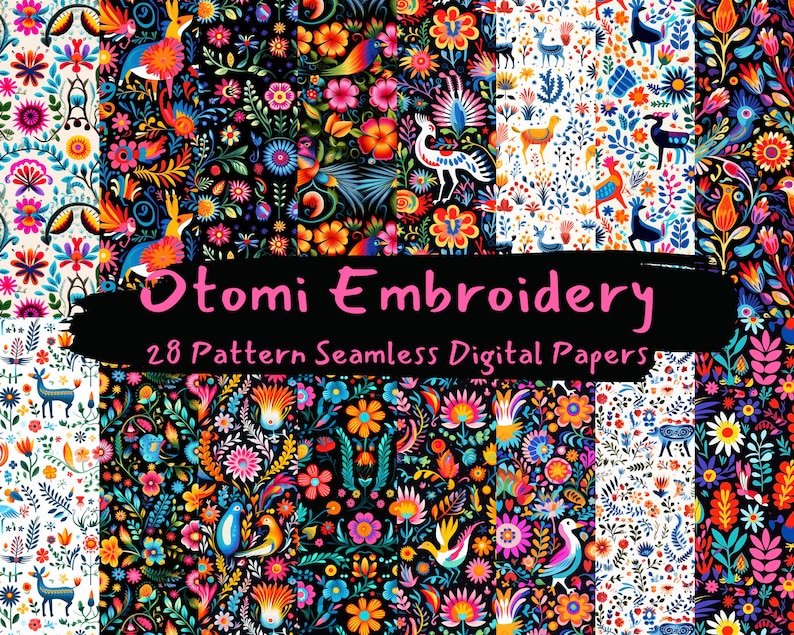 Otomi Embroidery Pattern Seamless Digital Papers Tile Patterns