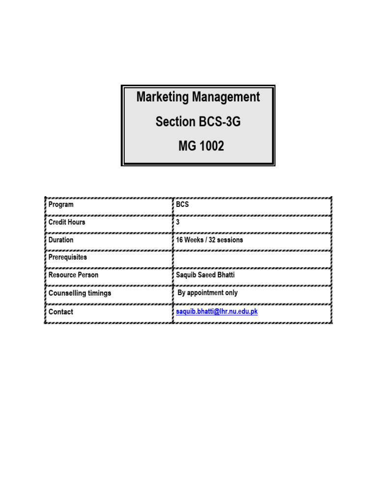 Course Outline MM BCS 3G FAST LHR PDF Marketing Business