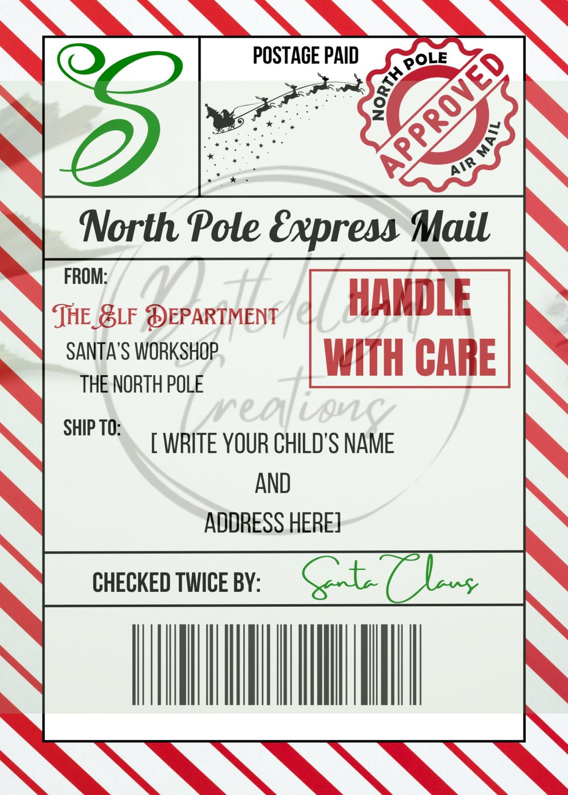 Printable Elf Shipping Label Elf on the Shelf Accessories Christmas