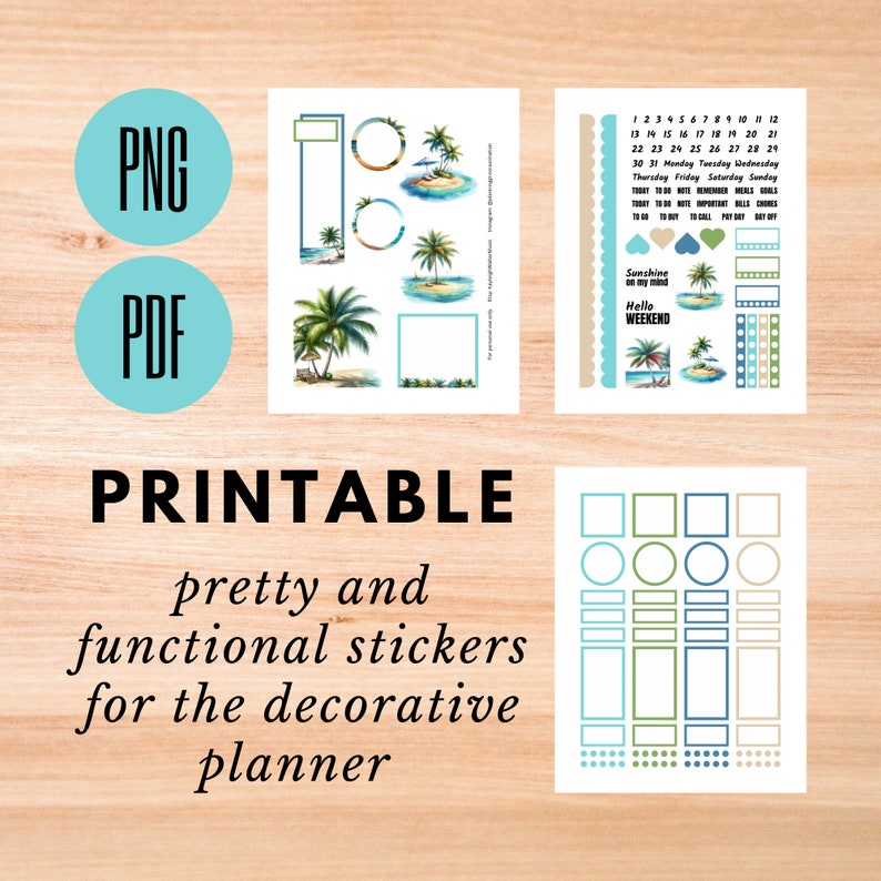 Printable Palm Trees Summer Planner Stickers Kit Download Three Sheets