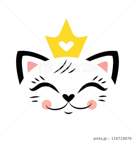 Cute Kitten head with heart crown Little のイラスト素材 116729076 PIXTA