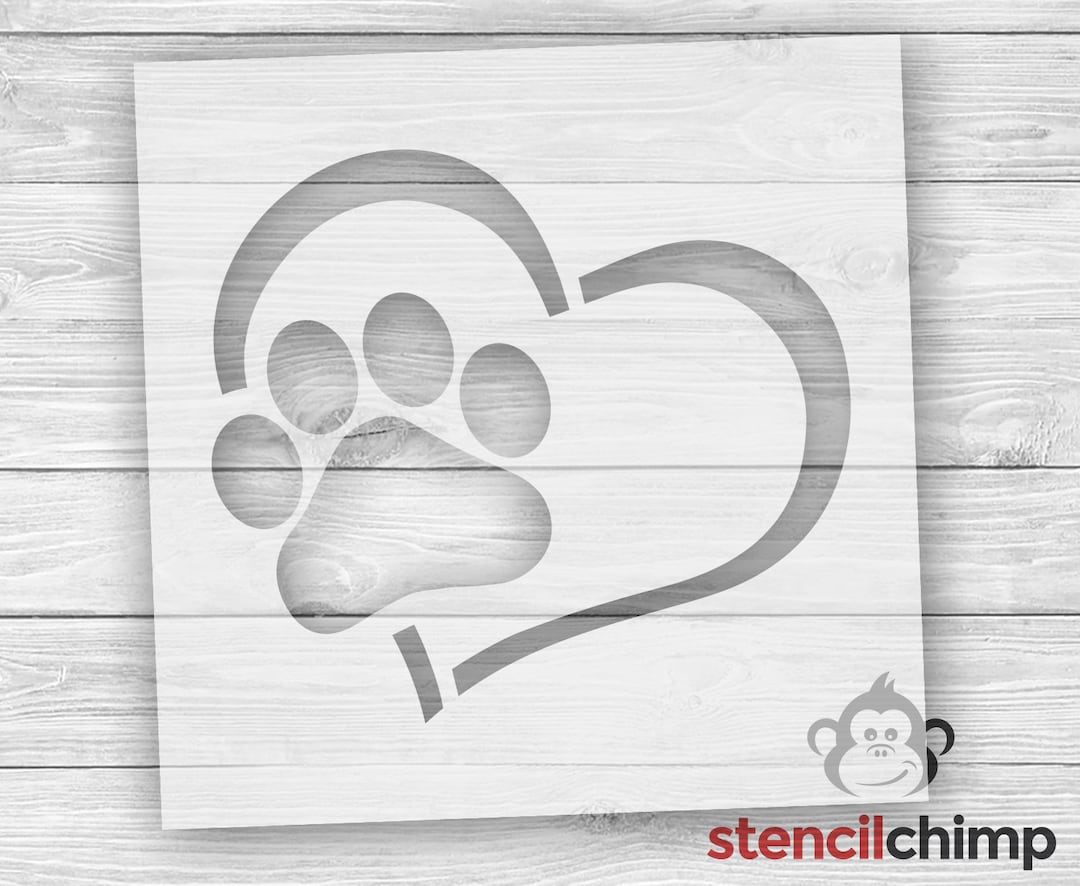 Paw Print in Heart Stencil Paw Stencil Dog or Cat Paw Pet Paw