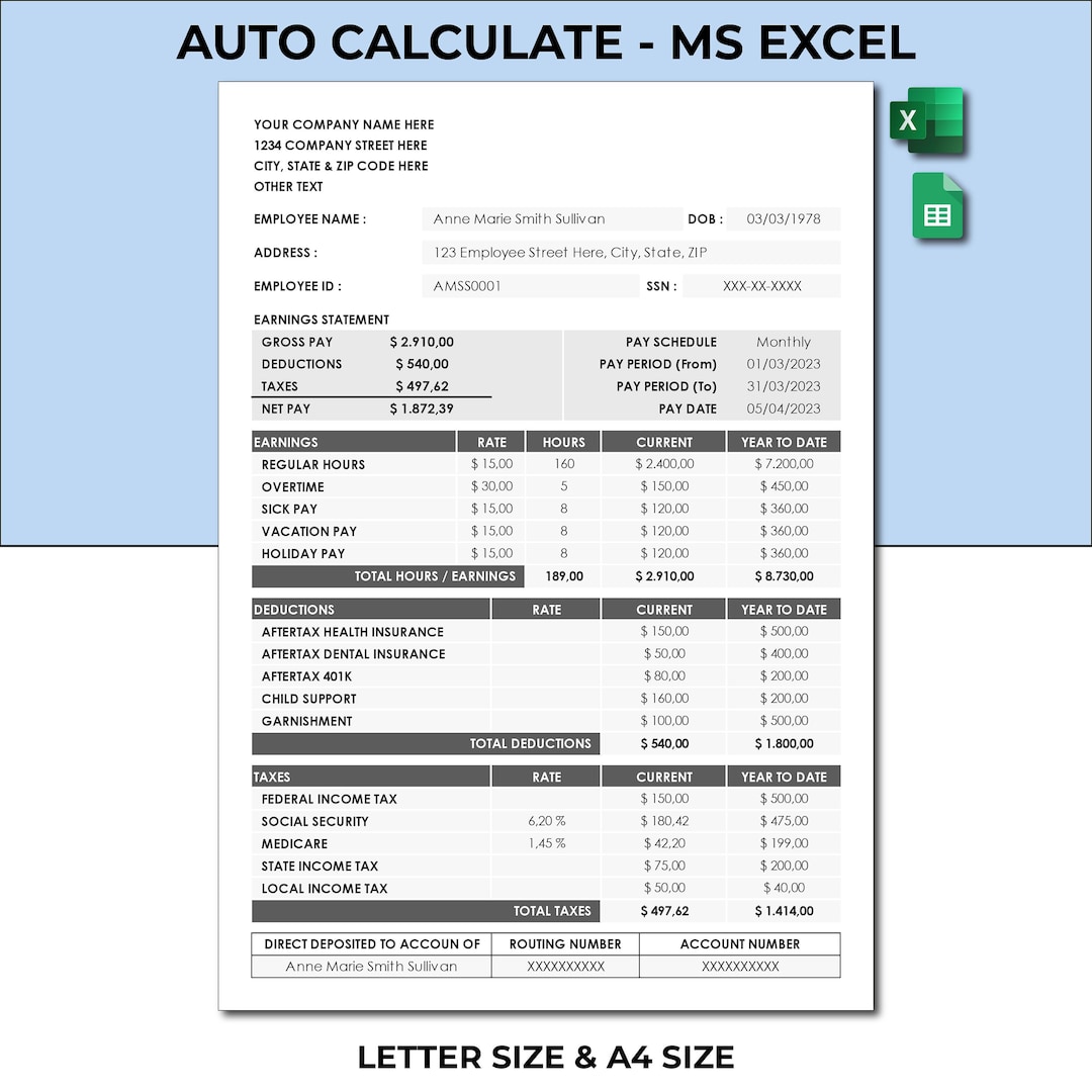Employee Pay Stub Spreadsheet Template Excel Google Sheet Paycheck
